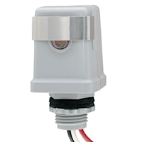 Photo controls feature stem mounting, thermal-type, controls with single and multi-voltage models. Thermal-type photo controls provide dusk-to-dawn lighting control and a delay action, which eliminates loads switching off due to car headlights and lighting. The thermal-type controls feature a cadmium sulphide photocell and a sonic-welded polycarbonate case and lens to seal out moisture. The design utilizes a dual temperature compensating bimetal and composite resistor for reliable long life operation over ambient temperature extremes. Cadmium sulphide photocell. Sonic-welded polycarbonate housing and lens to seal out moisture. Light level slide adjustment. Controls come with a washer gasket and locking nut.